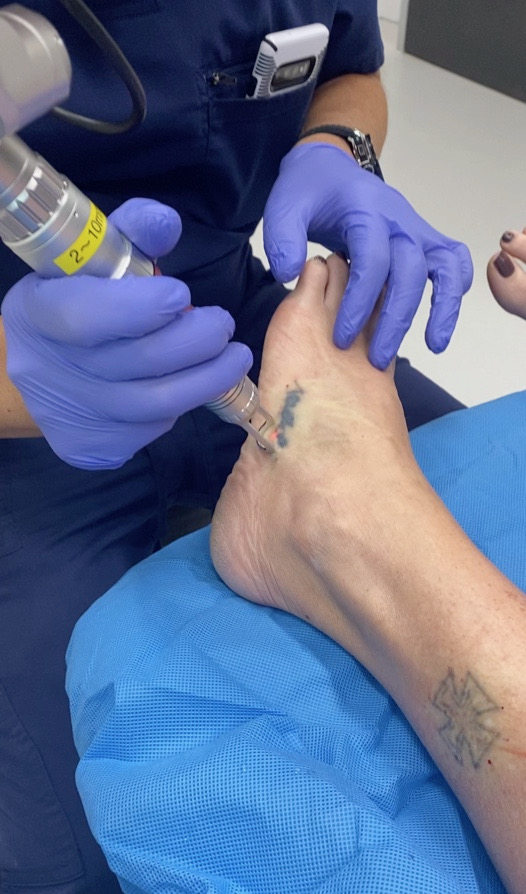 Tattoo removal can be unpleasant if the area to be treated isn’t properly anesthetized. Because we are a medical facility, we are able to give an injection of tumescent local anesthesia to completely numb the tattoo area.